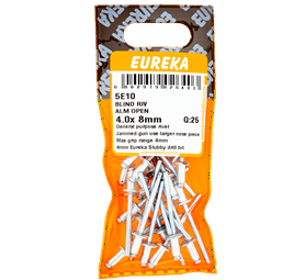 Eureka 25 x Aluminium Open Blind Rivets 4 x 8 mm