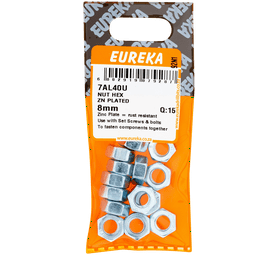 Eureka 8 mm Galvanised Hex Nuts 15 Pack