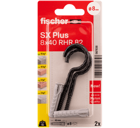 Fischer 2 x SX RHR 82 Plugs and Hook Screws 40 x 8 mm