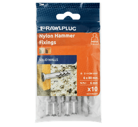 Rawlplug 10 x Nylon Hammer In Fixing Countersunk Head 6 x 80 mm
